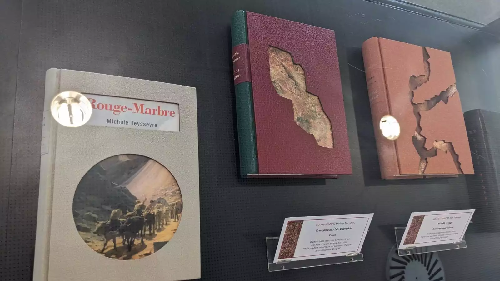 Samedi 24 juin, à La Médiathèque du Grand Narbonne. a eu lieu l’inauguration et la présentation de l’exposition de reliures réalisées à partir du roman de Michèle Teysseyre « Rouge-Marbre » paru en 2021 aux Éditions du Cabardès. En prime une présentation de marbres de Caunes Minervois a complèté l’exposition.