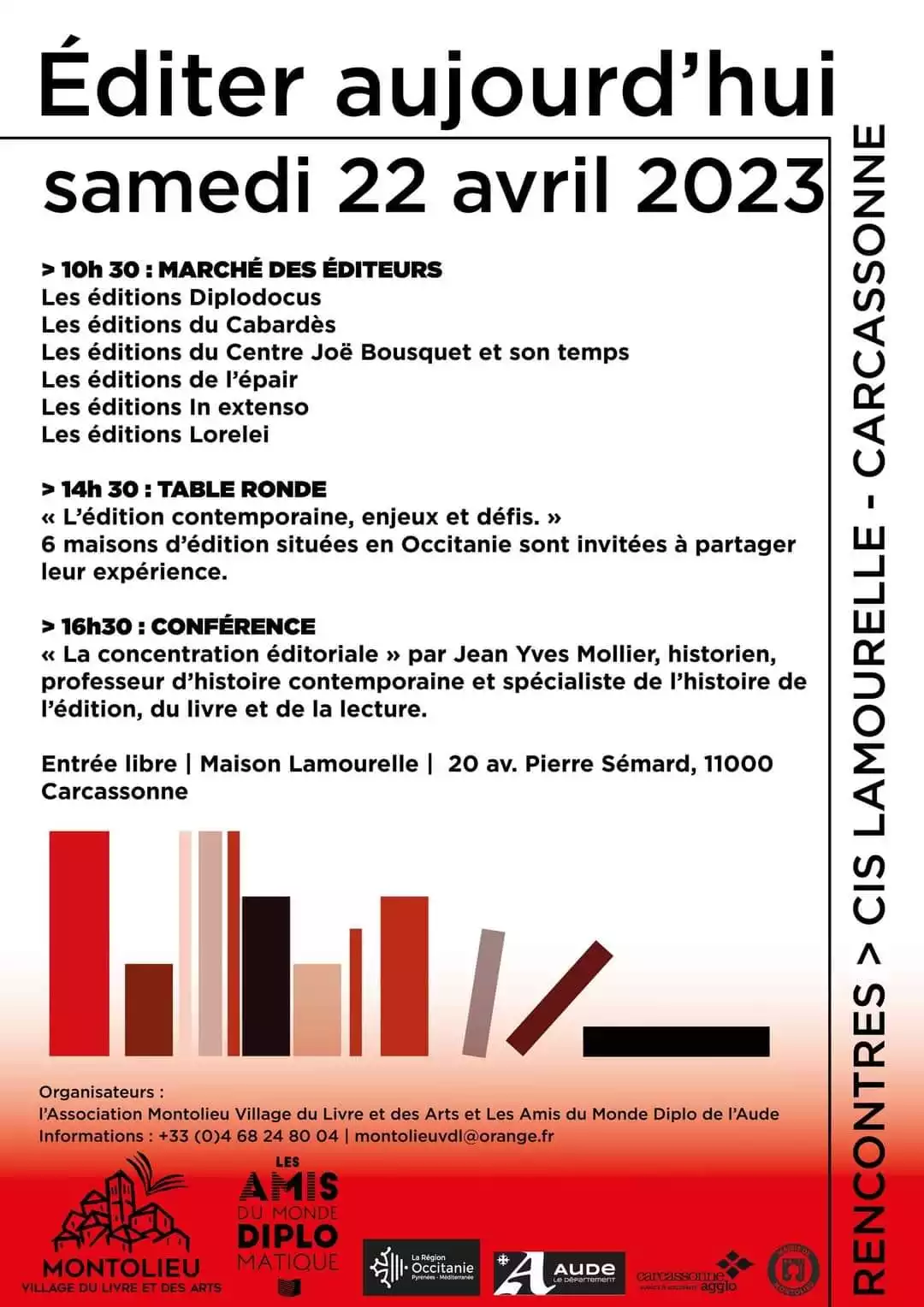 Les Éditions du Cabardès vous proposent de les rejoindre samedi 22 avril 2023 à la Maison Lamourelle à Carcassonne pour une journée consacrée à l’édition et au métier d’éditeur. Nous vous attendons nombreux !